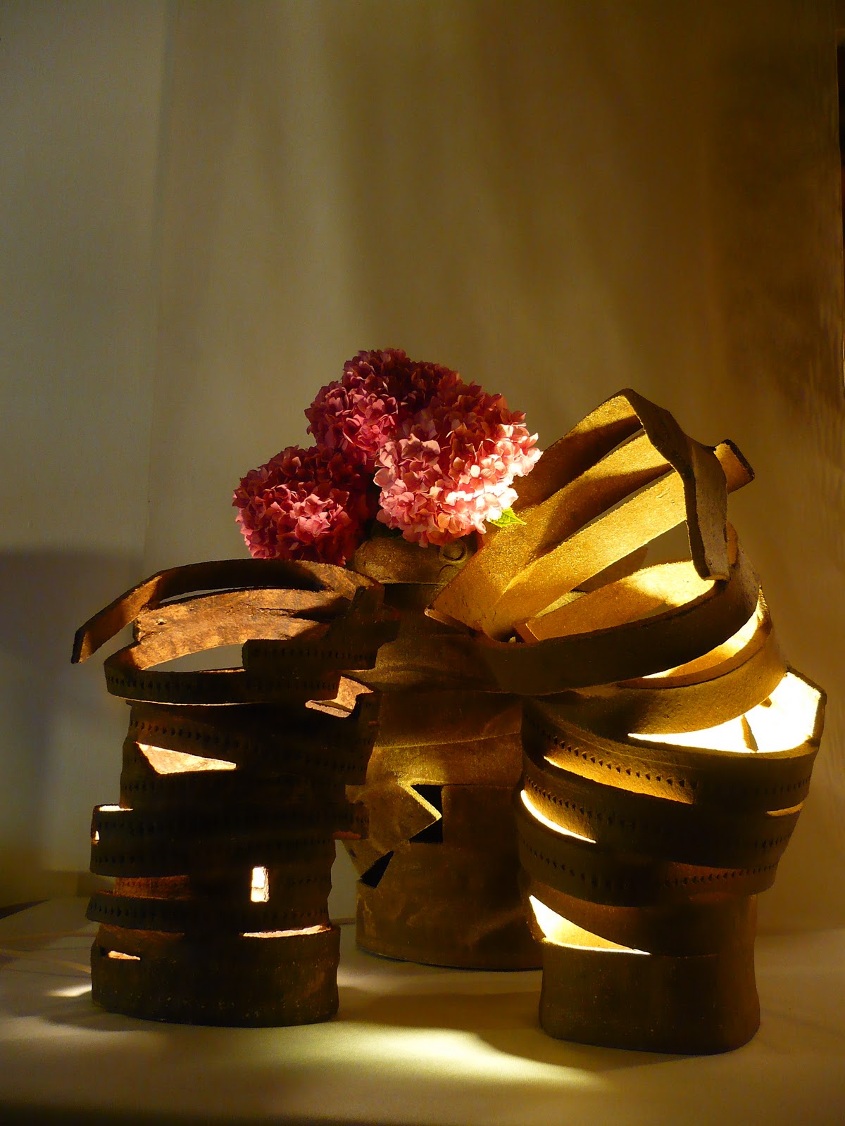 Misurano circa 22-23 cm di diametro e sono alti circa cm 180 ma possono essere realizzati anche più alti aggiungendo un tubo in sfoglia e un raccordo a tornio.
